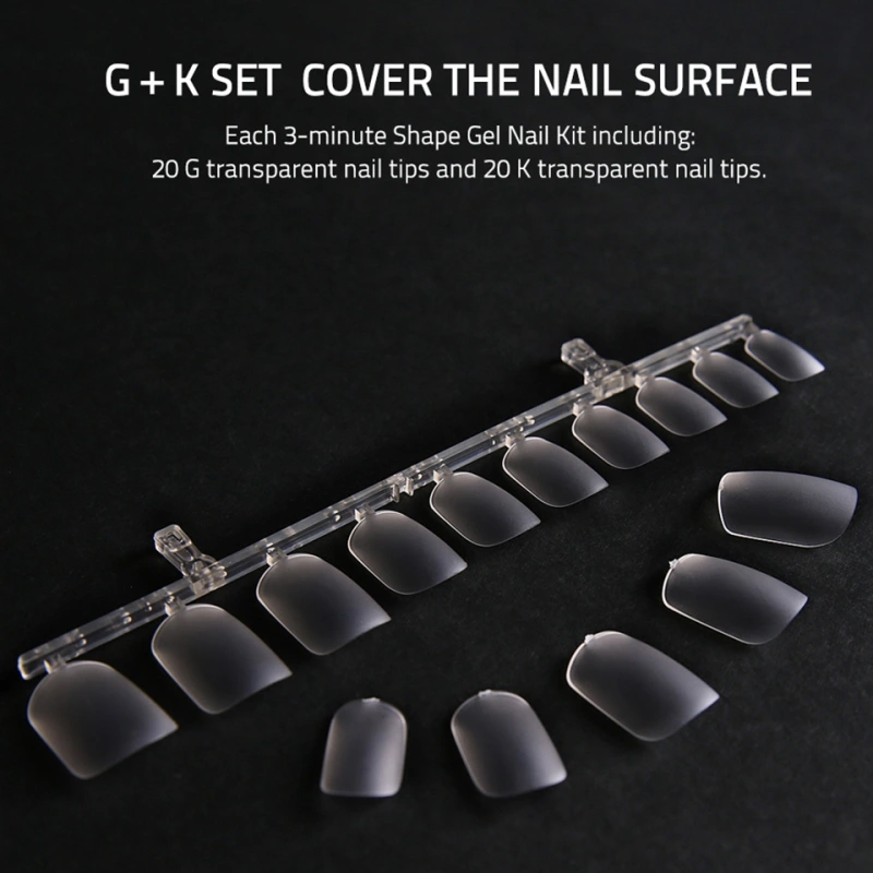 20 G transparent nail tips and 20 K transparent nail tips.