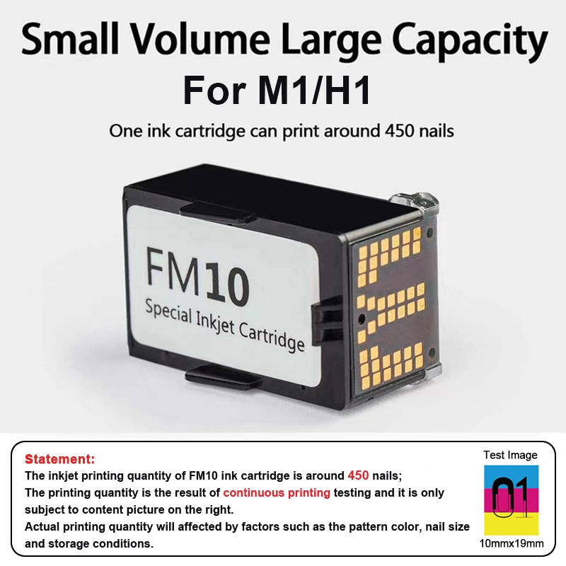 The inkjet printing quantity of FM10 ink cartridge is around 450 nails;