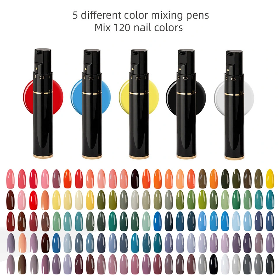 The SG5 set creates 120 different colors by 5 basic colors according to APP Guidance, which can be applied to 1000 nail tips or artificial nail tips, suitable for personal and nail salon use.
