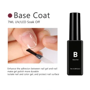 1.Apply Base Gel on the nail as the first layer, make it thin and even to cover the whole nail, cure with LED for 30 seconds.